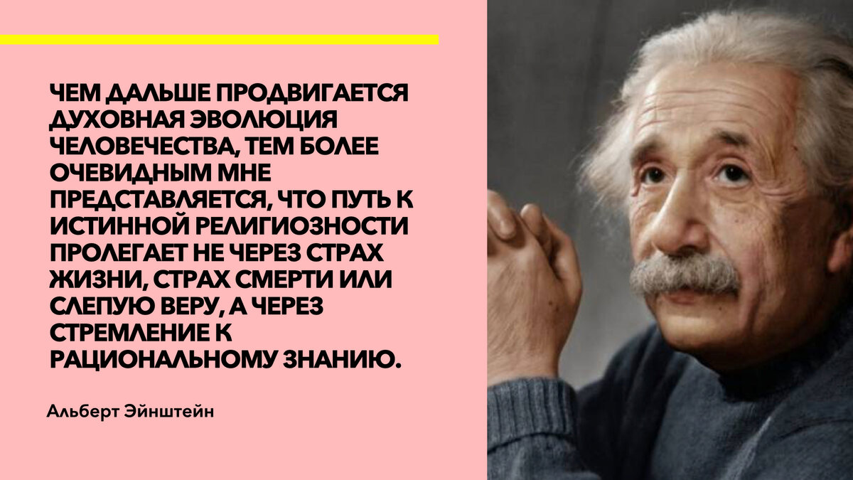 Эйнштейн не верил в образ Всевышнего, который воспевается во многих культурах мира. Он говорил, что на небесах точно не сидит бородатый человек, который только и делает, что следит за каждым нашим шагом.