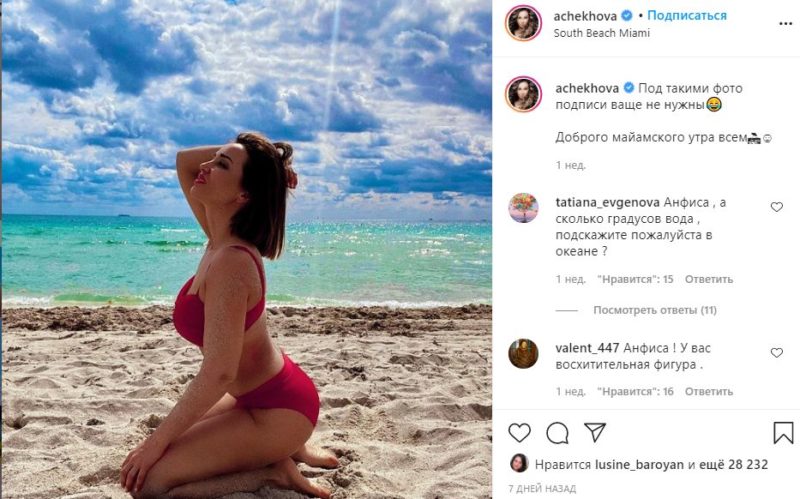 «Пленительная женщина», «Как же вы роскошны», «Хорошеете год от года», «Сияет Анфиса ярче солнца самого», «Просто великолепно», — комментировали восторженные фанаты.