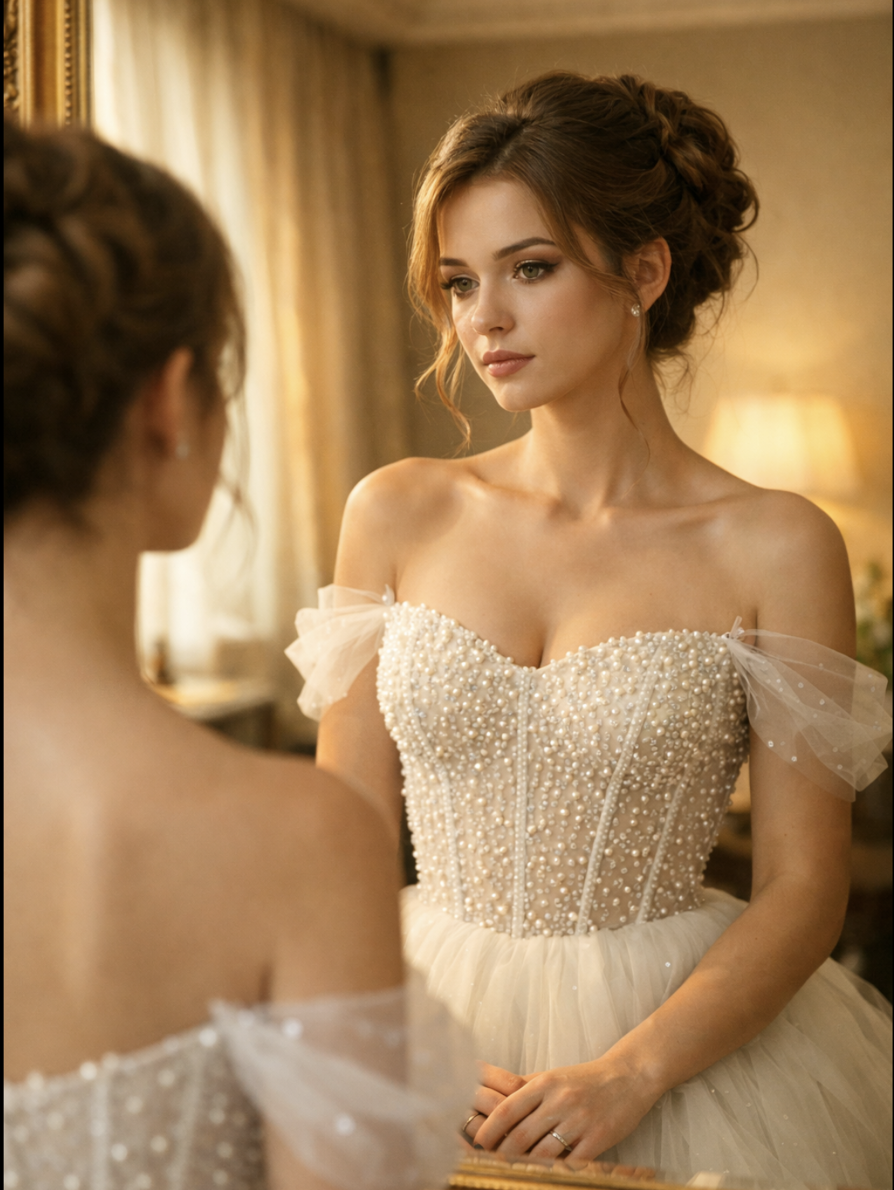 Утреннее солнце ласково заливало золотистым светом просторный люкс в элитном загородном комплексе отдыха. В огромном зеркале с изящной позолоченной рамой отражалась молодая женщина, словно сошедшая с картинки из глянцевого журнала. Анна смотрела на своё отражение и едва узнавала себя. Пышное платье из невесомого фатина, корсет, украшенный тысячами крошечных жемчужин, сложная причёска, над которой мастера трудились несколько часов подряд… Всё это выглядело как воплощённая мечта. Мечта, о которой она, обычная девушка из скромного пригорода, даже не смела грезить вслух.