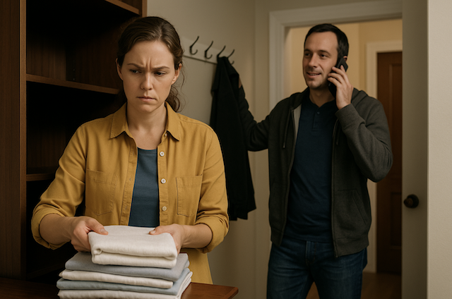 Лена в это время складывала бельё в шкафу, когда до неё донеслись знакомые интонации мужа из прихожей. Антон разговаривал по телефону, и сразу стало ясно, что на линии его мать. Лена, сама того не желая, начала вслушиваться — стены тонкие, а Антон никогда не умел приглушать голос.