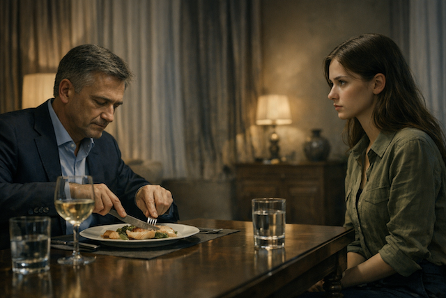 Владимир не поднимал глаз от тарелки, аккуратно разделяя филе рыбы. Его голос звучал ровно и негромко — тем самым тоном, который в деловых переговорах действовал сильнее крика.