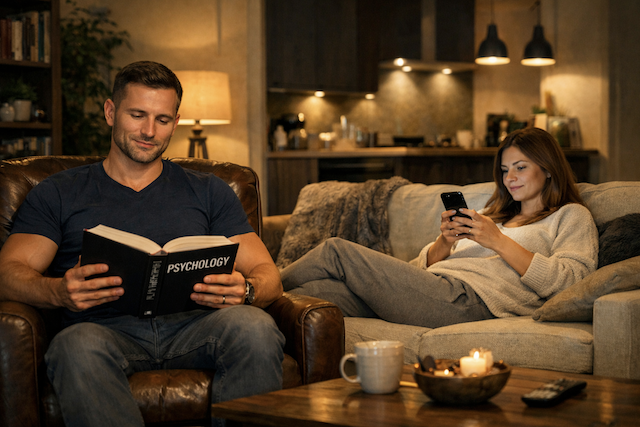 Однажды вечером, когда он сидел с очередной книгой известного психолога, он заметил, как она снова улыбается экрану смартфона.