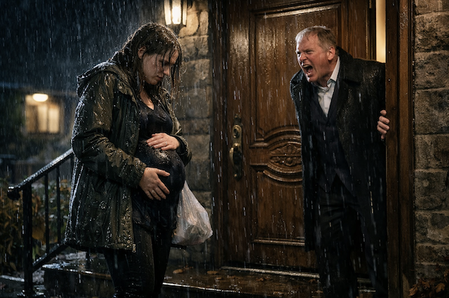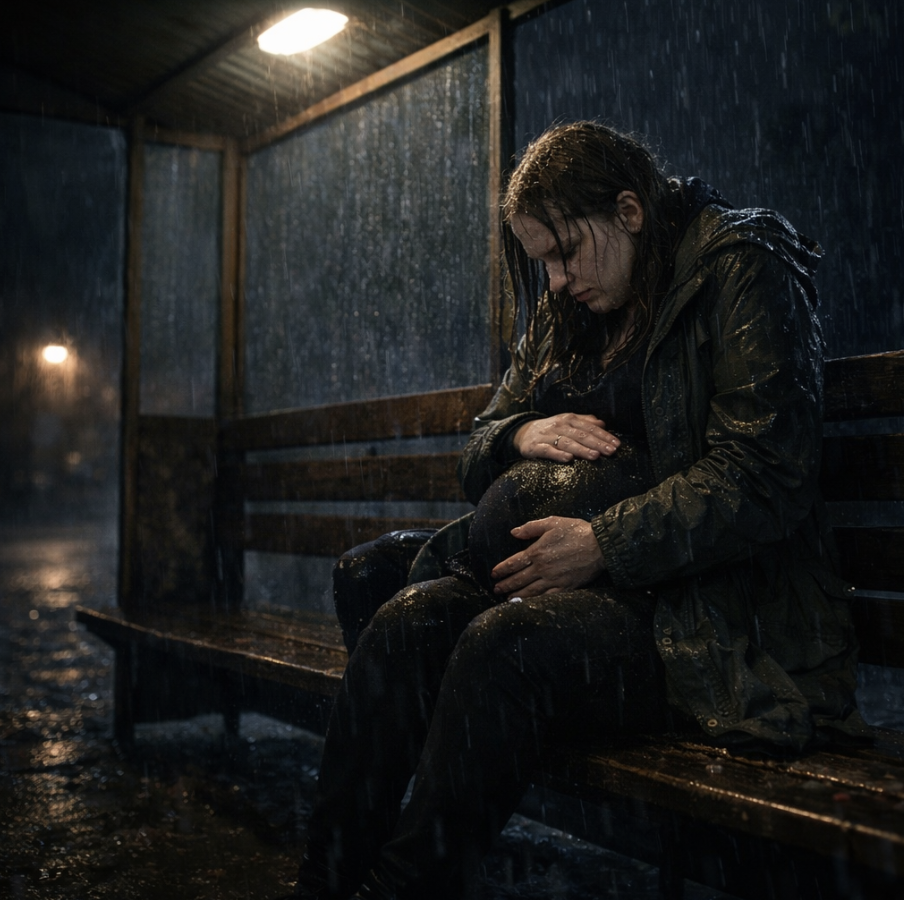 Ливень усилился. Это был не просто дождь — тяжёлый ледяной поток, смешанный с мокрым снегом: он бил по волосам, стекал по щекам, затекал за воротник. Мила инстинктивно обхватила живот обеими руками, будто могла защитить малыша от того, что только что случилось. Шестой месяц. Живот уже не спрячешь по-настоящему — можно лишь сделать вид, что его «не видно». Но отцу было видно всё.