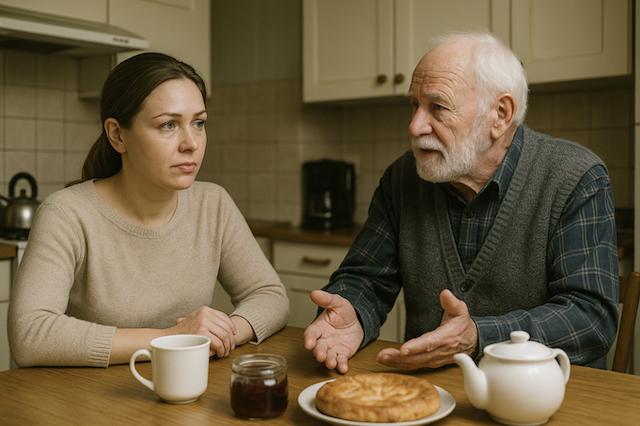 И вот однажды приехал отец Антона — Павел Семёнович. Добродушный, седой, в старой жилетке. Соскучился, видно, по людям. Светлана встретила тепло — чай, пирог, варенье. Антон куда-то вышел, а Павел разговорился: