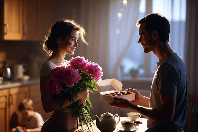 Сергей не выдержал первым. Вернувшись с работы, он зашёл в цветочный магазин и кондитерскую.