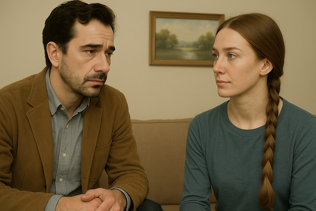 Дмитрий заметил: Марина его избегает — взгляд уходит в сторону.
