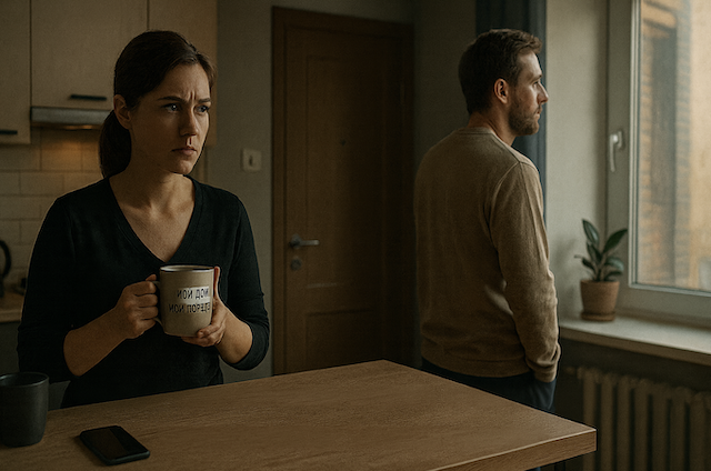 Лариса застыла с чашкой чая в руках. Надпись «Мой дом — мой порядок» на керамике казалась насмешкой. Она посмотрела на мужа, но тот лишь виновато пожал плечами и отвернулся к окну.