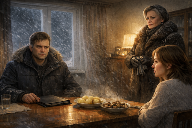 Дверь распахнулась, впустив в прихожую облако ледяного пара и резкий запах чужих духов. Илья вошёл не один. За его спиной, словно тень, выросла монументальная фигура Лидии Петровны. Тёща не стала снимать тяжёлую шубу, лишь стряхнула снег с воротника и окинула комнату взглядом, будто приценивалась к лоту на аукционе.