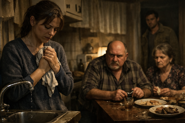 Дарья застыла у раковины, сжимая полотенце. Холодная капля сорвалась с крана и медленно поползла под манжету. Кухня была пропитана запахом подгоревшего жира и лука — устойчивым, въедливым, словно сам дом дышал им. Казалось, он осел в мебели, в шторах, в её волосах и даже под кожей.
