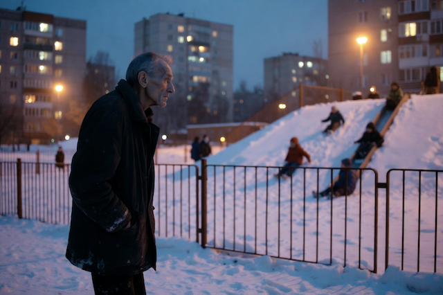 В другой раз я увидела его зимой возле детской площадки на соседней улице. Уже темнело. Он стоял у забора и молча смотрел во двор, где дети катались с горки. Я прошла мимо, потом обернулась — точно Николай. В старом пальто, руки глубоко в карманах, воротник поднят. Просто стоял и смотрел.
