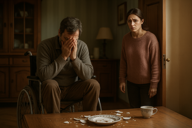 Когда-то, в первые месяцы «после», она плакала вместе с ним. Тогда её голос рвался наружу в том же регистре — одинаково сорванный, неправдоподобно громкий в ночной кухне. Они кричали в потолок, в шкафчики из ИКЕА, в таз с водой, где замачивалась тряпка, в собственные отражения в чёрном экране телевизора. Потом эта волна ушла. И вместо бурь пришли дни — одинаковые, упрямые, как серые камешки на набережной. Даниил, её когда-то сильный, шумный, щедрый на смех мужчина, больше двух лет жил в кресле с мягкими подлокотниками. Кресло стало его опорой и его клеткой, а колёса — единственной геометрией движения.