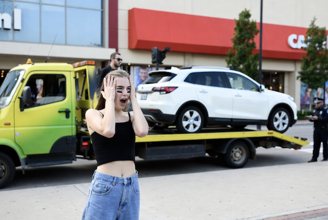Мой белоснежный кроссовер стоял в самом запрещённом месте из всех возможных — прямо на пешеходном переходе, перегораживая спуск для колясок, в зоне действия знака «Остановка запрещена» и таблички «Работает эвакуатор». Кристина, видимо, решила, что правила существуют только для других, а она «буквально на пять минуточек» заскочила за кофе или косметикой.