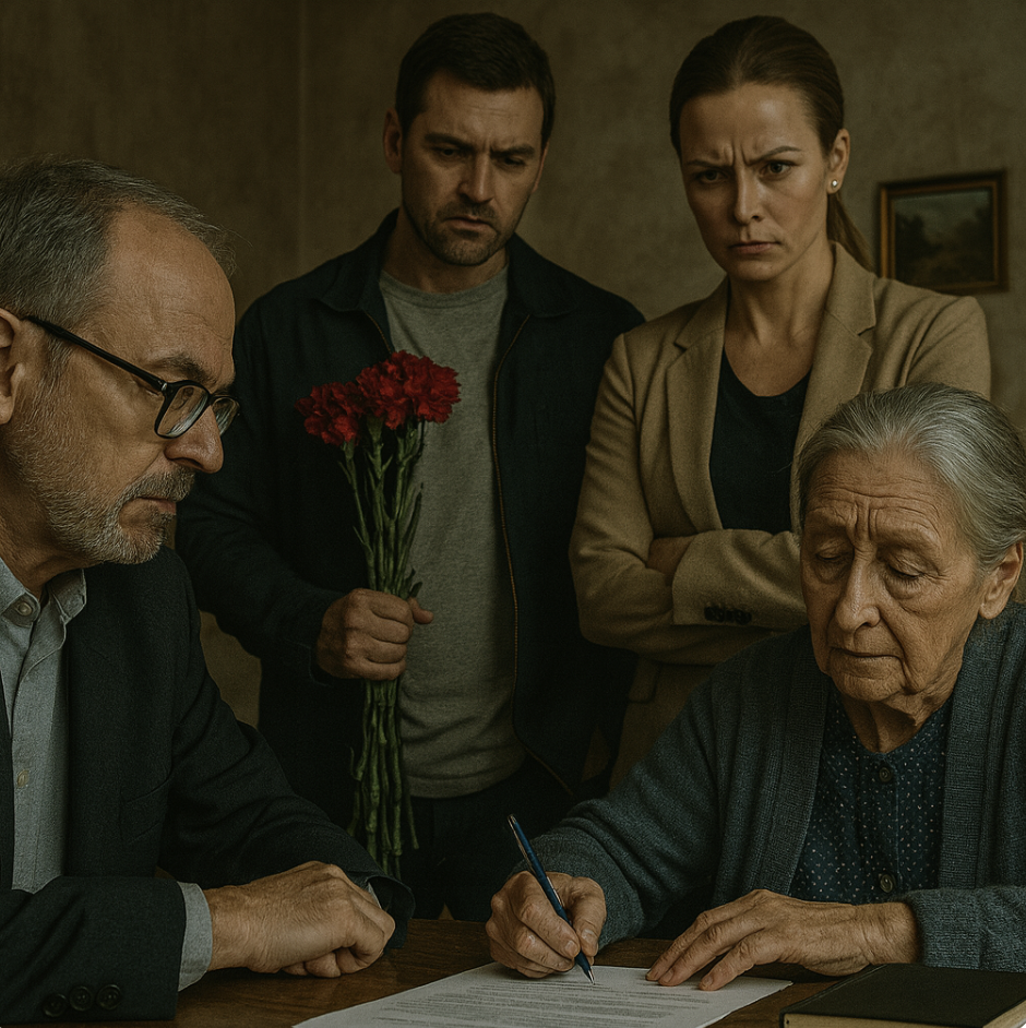 В ту ночь она продумала всё до мелочей. На следующий день, сославшись на боли в спине, поехала к нотариусу — старому знакомому её мужа.