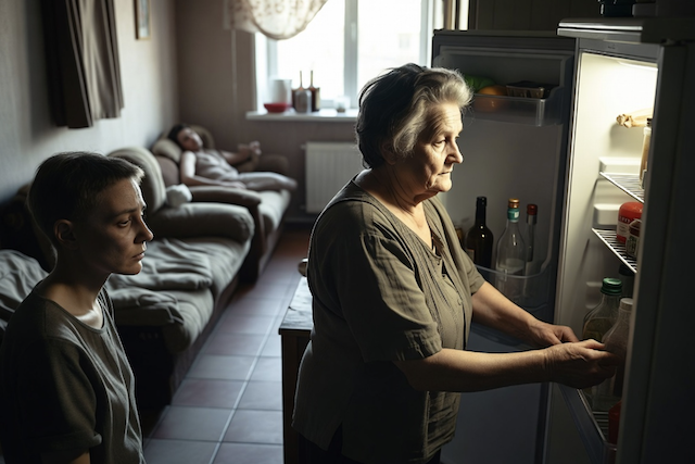 На кухне в квартире дочери всегда пахло чем-то слегка подгоревшим, а из соседней комнаты доносился приглушенный гул работающего телевизора, где обычно шли какие-то дневные передачи или старые фильмы. Александр, как и в предыдущие разы, лежал на диване, не проявляя особого интереса к происходящему. Елена молча открывала холодильник, выбрасывала просроченный кефир и другие продукты с истекшим сроком, тщательно протирала полки влажной тряпкой, а потом аккуратно раскладывала принесенные ею свежие покупки. Эти привычные движения были для нее настоящим ритуалом, который повторялся из недели в неделю и помогал ей чувствовать связь с дочерью даже в те моменты, когда слова не находились. У мусорного ведра она заметила несколько пустых бутылок и машинально пересчитала их, как считают ступеньки на давно знакомой лестнице. В прошлый раз их было заметно меньше, и это наблюдение вызвало у нее тихую тревогу, которую она старалась не показывать.