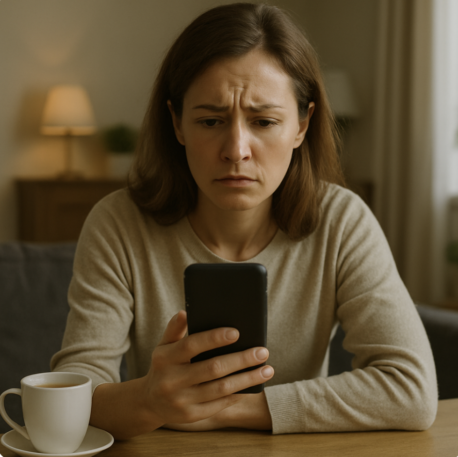 Сначала я просто смотрела на экран, будто руки и ноги отключились. Потом наоборот — всё вокруг стало слишком отчётливым. Я начала различать гул холодильника, тиканье часов в гостиной, уличные звуки: подъехала машина, хлопнула дверью, кто-то прошёл мимо окна. Мир не рушился и не плыл. Он оставался на месте — просто всё, что я до этого момента думала о своей жизни, резко потеряло опору.
