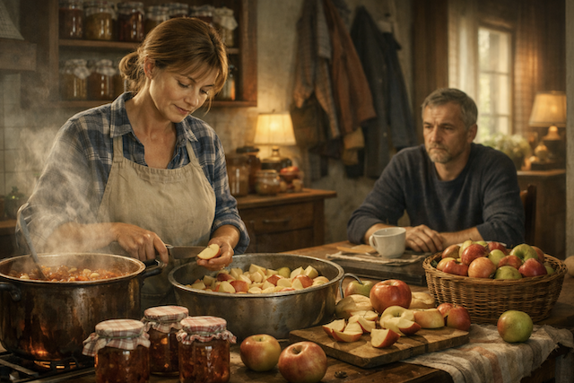Я всегда готовила варенье в октябре. Яблони в саду приносили столько яблок, что хватало на десять банок. Каждую осень я выходила с тазом, собирала плоды, нарезала их и ставила на медленный огонь. Дом наполнялся тёплым, густым ароматом, и мне казалось, что пока я томлю варенье, всё идёт правильно.