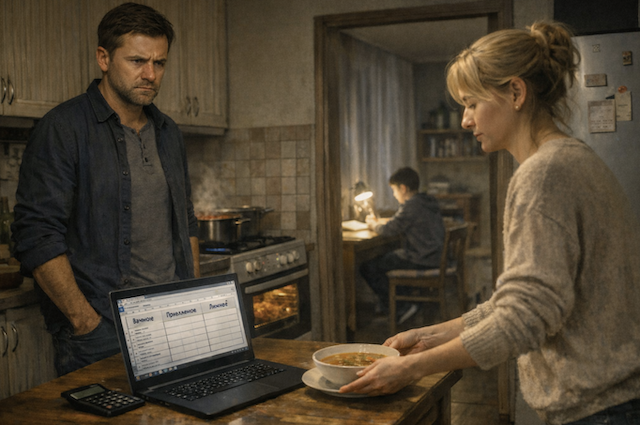 Артём опустился за стол и раскрыл ноутбук. На экране всплыла привычная таблица, куда были внесены все Ленины расходы. Она видела её столько раз, что могла бы воспроизвести наизусть. Первый столбец — «важное», второй — «приемлемое», третий — «лишнее»…