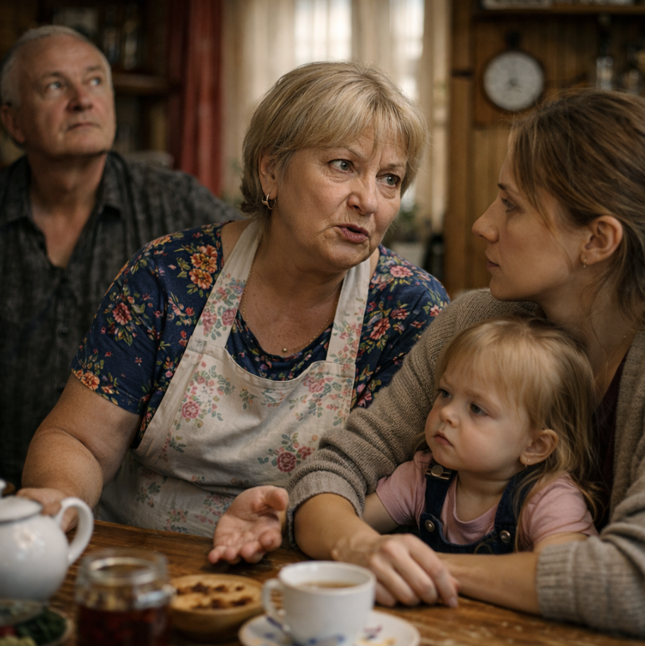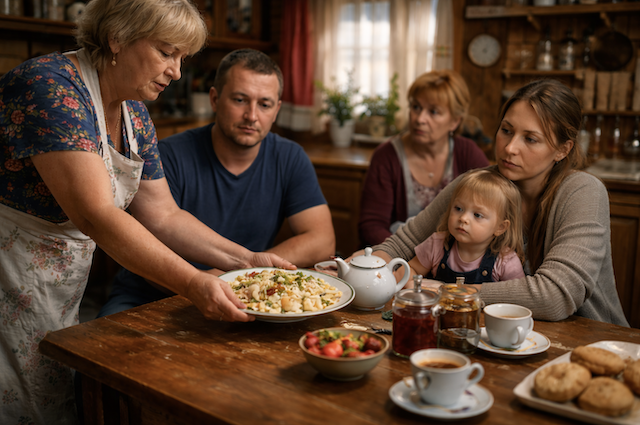 Марина застыла. Она перевела взгляд с тарелки на мужа, потом на свекровь. Лиза у неё на руках замолчала, широко глядя на еду. Сергей неловко взял вилку.