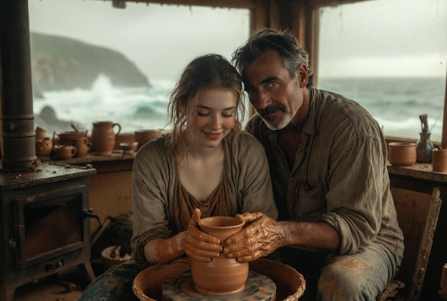 Внутри приятно пахло влажной глиной, свежим деревом и ароматным кофе. За гончарным кругом сидел мужчина. Его сильные руки, покрытые глиной, уверенно и в то же время бережно превращали бесформенный комок в изящный кувшин. Он поднял голову. У него были добрые серые глаза и искренняя, тёплая улыбка.