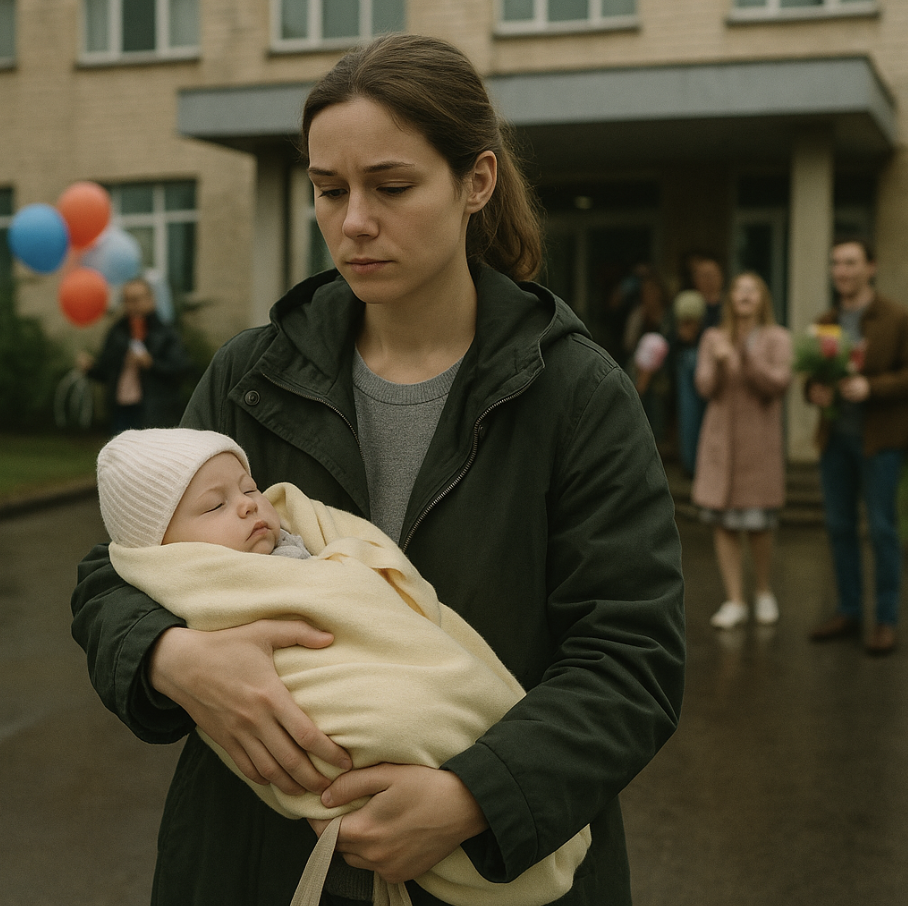Когда меня пришло время забирать, я стояла у центрального входа с пакетом и ребёнком на руках. Вокруг суетились родственники — шары, цветы, крики радости, объятия. А у меня была только тишина.