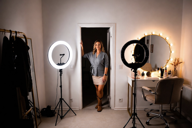 Елена аккуратно распаковала большую коробку и достала профессиональный кольцевой светильник на высокой стойке. Он был не дешёвой подделкой, а качественным оборудованием с возможностью регулировки цветовой температуры. Она долго изучала отзывы мастеров, сравнивала характеристики и ждала подходящей скидки. Теперь всё было на месте — последний важный элемент.