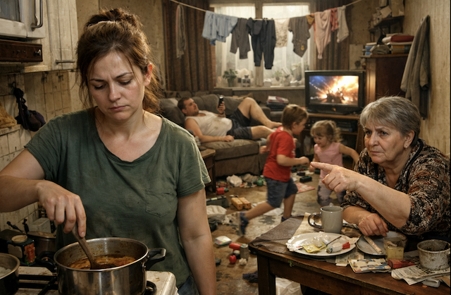 В первый же вечер жизнь Елены превратилась в настоящий хаос. Дети, не привыкшие к правилам, носились по квартире, задевали углы мебели и роняли вещи. Сергей сразу занял диван в гостиной, включил телевизор на максимальную громкость и потребовал ужин. Марина распаковала вещи и объявила, что «в тесноте, но не в обиде».