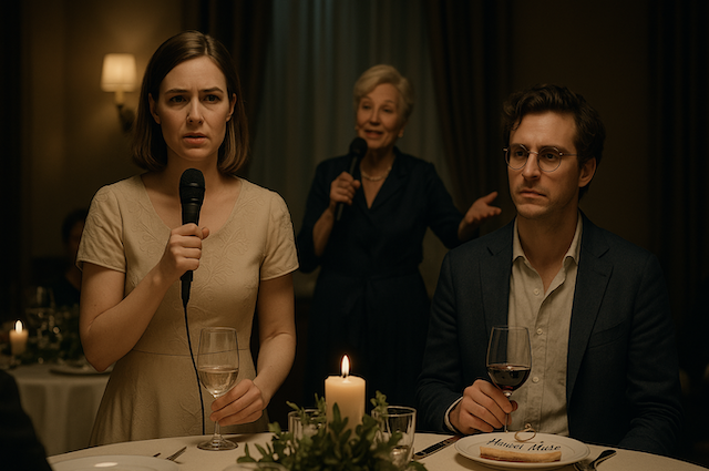 — Спасибо, — произнесла я, взяв микрофон. Голос дрожал, но я не позволила ему сломаться. — Благодарю всех за поздравления. Особенно — за такие… тёплые слова.