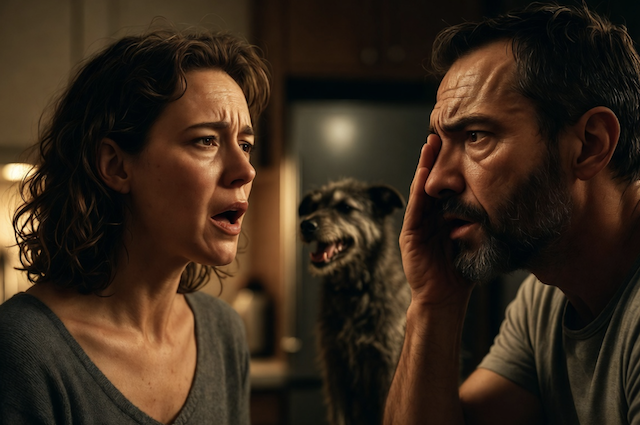 В тот памятный холодный вечер я наконец решилась на шаг, который давно зрел в моей душе, как тяжёлая туча перед грозой. Я посмотрела прямо в глаза своему мужу и произнесла слова, которые навсегда изменили нашу жизнь: «Или я, или этот бездомный пёс. Выбирай прямо сейчас, без отговорок и отсрочек». Мой супруг, которого звали Дмитрий, сделал свой выбор с поразительной скоростью, и этот выбор вонзился в меня острее, чем зубы животного. Я шагнула ближе к собаке, заметила потрёпанную верёвку на её ошейнике, крепко схватилась за неё и потянула пса к выходу, чтобы раз и навсегда избавить наш дом от этой проблемы. Пёс ответил низким, утробным рычанием — таким глубоким, что казалось, вибрация прошла сквозь пол и отозвалась в моих тапочках. В следующую секунду он резко рванулся вперёд, и верёвка обожгла мою ладонь, словно раскалённый металл. Укус был точным и молниеносным — четыре прокола, как будто кто-то прошёл по коже степлером. Боль пришла не мгновенно, а накатывала волнами, сначала тупая, потом острая и пульсирующая.