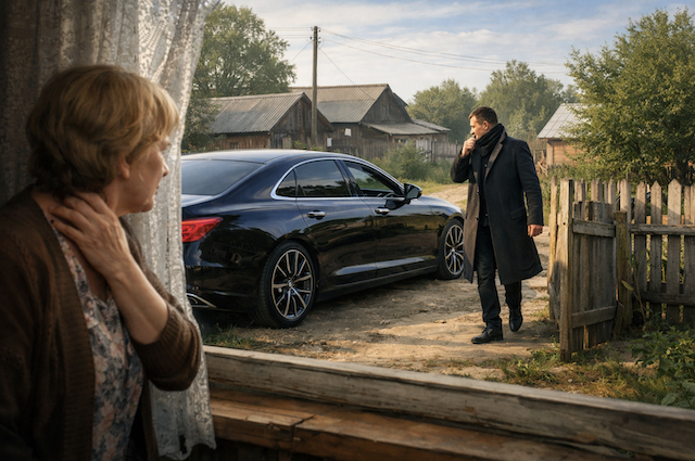 Людмила замерла у окна, отодвинув тюль, и не могла поверить своим глазам. К ее воротам подъезжал темный, сверкающий, чужой автомобиль — громадный, с затемненными стеклами, больше напоминающий яхту, чем обычную машину.