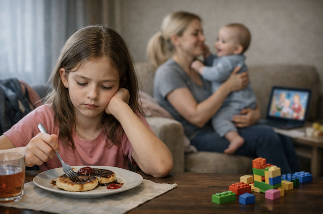 Ещё Милане не приходились по вкусу завтраки, особенно творожные оладьи. Марина, новая жена отца, готовила их почти ежедневно. Они выходили тёмными, пропитанными маслом, с пережаренными краями. Жир стекал на тарелку, и от тяжёлого запаха девочке делалось дурно.