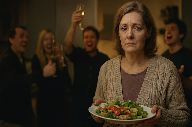 Я поставила на стол блюдо с закуской, улыбнулась гостям, автоматически поправила салфетку перед свекровью — рука сама сделала знакомое движение — и почувствовала, как ладони предательски подрагивают. Никто, конечно, не обратил внимания. Музыка гремела чуть громче обычного, молодёжь из отдела мужа громко спорила и хохотала. Я, как всегда, была спокойным фоном.