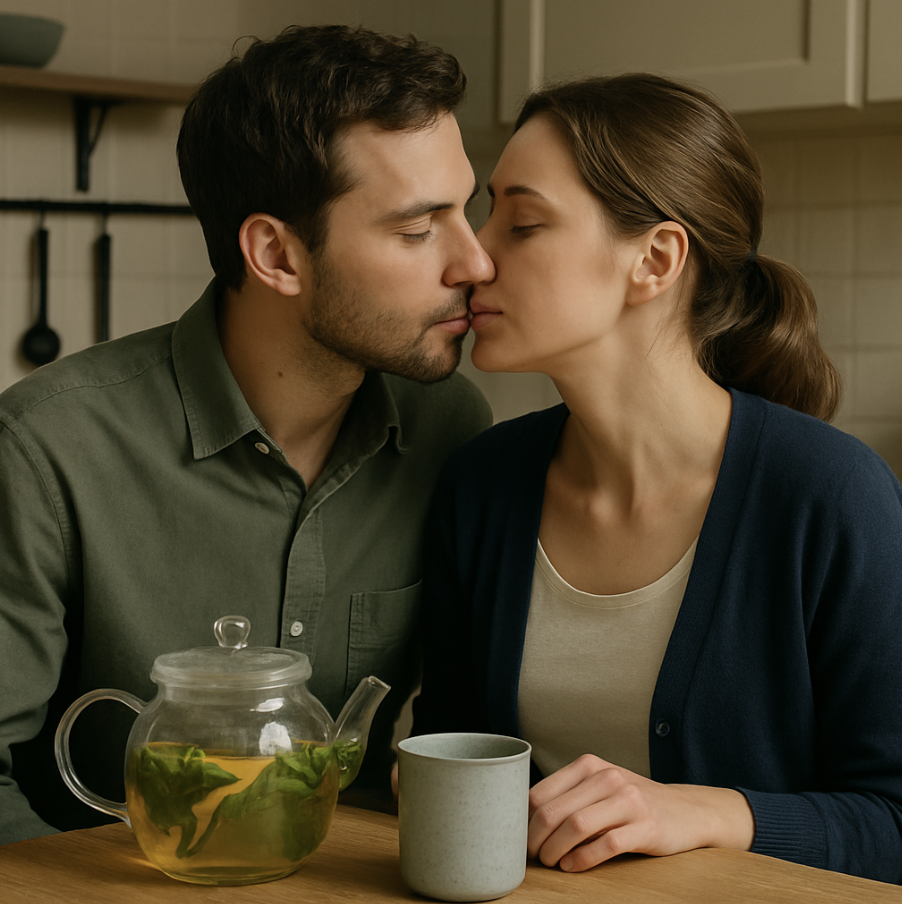 Она опустила взгляд. В этот момент между ними будто натянулась нить. Он сделал шаг ближе, и она не отстранилась. Поцелуй был тихим, как дыхание. Коротким. Настоящим.