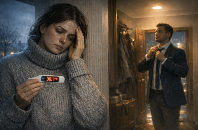 Десять лет брака. Десять лет она была фоном для его взлёта. Она знала вкусы его начальства, помнила даты чужих дней рождений и могла накрыть стол даже с трескающейся головой. Но сегодня внутри что-то сломалось. Возможно, из-за жара. А возможно — из-за ясного понимания: её состояние для него лишь неудобство.
