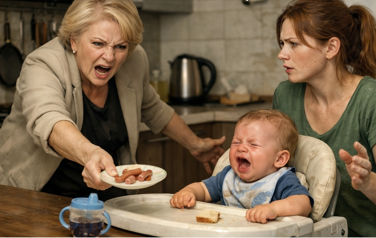 Валентина Петровна ворвалась на кухню, словно ураган, и выдернула тарелку прямо из-под носа у Артёма. Малыш мгновенно разразился плачем — громким, отчаянным, таким, каким умеют плакать только дети, у которых отняли что-то важное.