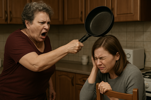 И тут свекровь сорвалась окончательно. Схватила сковороду со стола и ударила Елену по голове.
