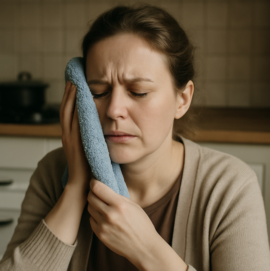 Елена сидела на кухне, прижимая к щеке мокрый платок. Лицо пылало, в висок будто вогнали гвоздь. От тяжёлой сковороды расплылся синяк величиной с ладонь.