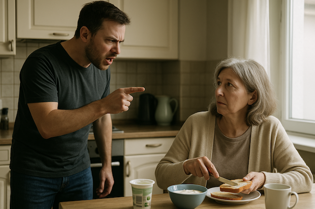 — Я брала свой, — спокойно сказала я, продолжая мазать масло на тост, — он стоял в голубой миске, внизу холодильника.