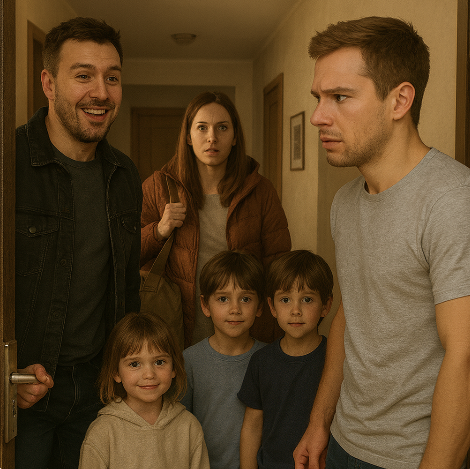 На пороге стоял его брат Илья, за ним — трое детей: двойняшки Петя и Тимофей, и маленькая Яна. Сзади с сумкой стояла Полина.