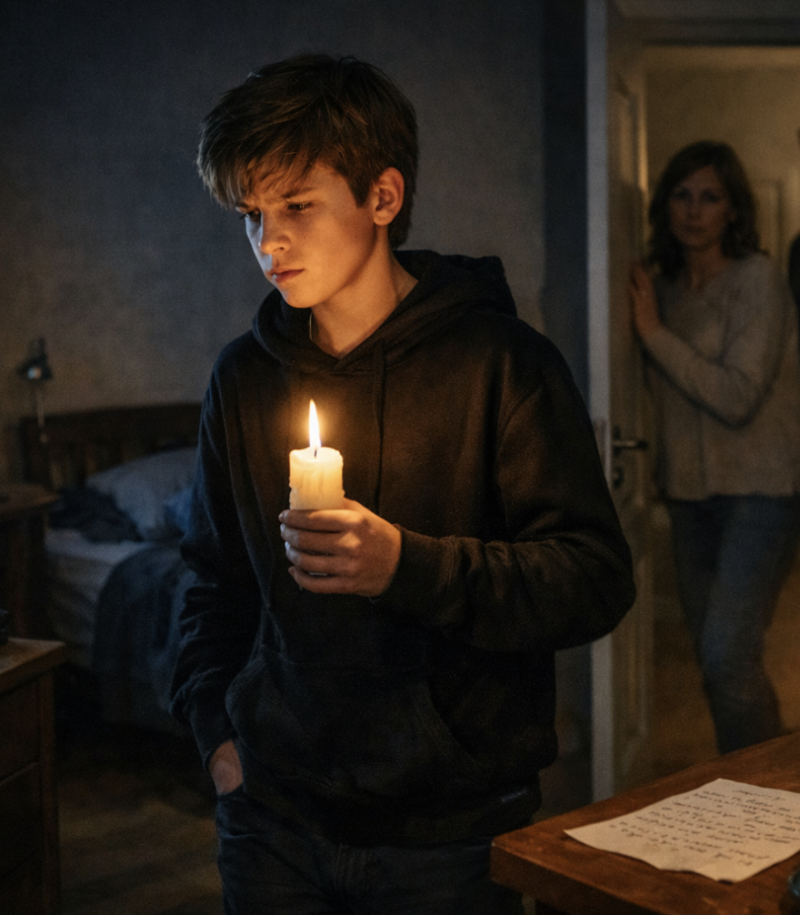 Подросток застыл со свечой в руке, чувствуя, как краснеет.