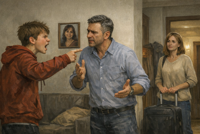 — Артём, познакомься, это Наташа, моя невеста. Теперь она будет жить с нами, — сказал отец, занося в прихожую её чемодан.