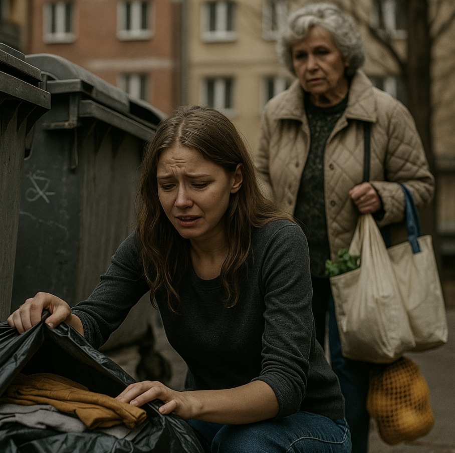 Руки задрожали. Она присела и беспомощно перебирала содержимое. Вся её история — в мусорных мешках.