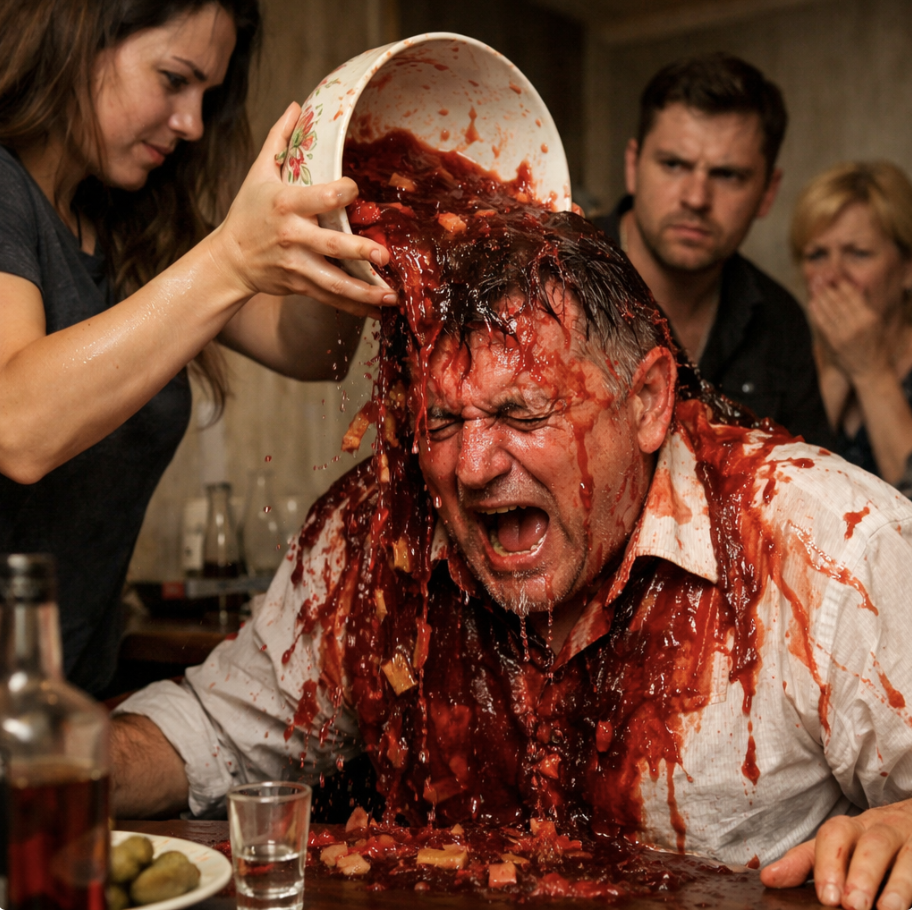 — Чего застыла? — рявкнул он. — Видишь, у меня рюмка пустая? Быстро на кухню — принеси ещё. И закуску прихвати.