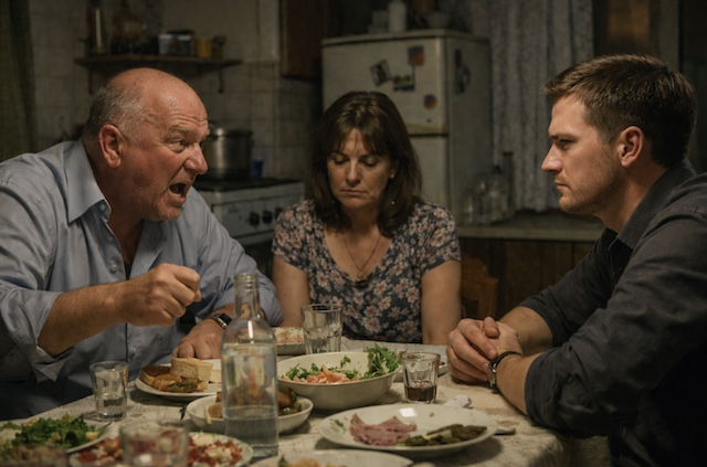 — Чего застыла? — рявкнул он. — Видишь, у меня рюмка пустая? Быстро на кухню — принеси ещё. И закуску прихвати.