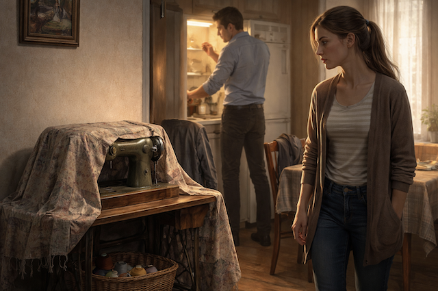 Старая швейная машина, укрытая выцветшим пледом, ютилась в дальнем углу комнаты.