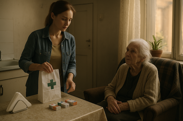 — Вера Павловна, вот ваши препараты. Ровно три упаковки, как назначал врач, — голос Анны звучал мягко и приглушенно, будто растворяясь в тишине комнаты.