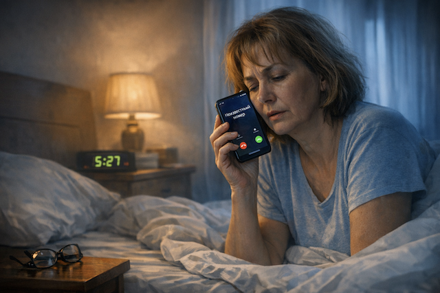 Она нащупала телефон и задела очки, которые со звоном упали на пол. Подняв смартфон, женщина увидела неизвестный номер.