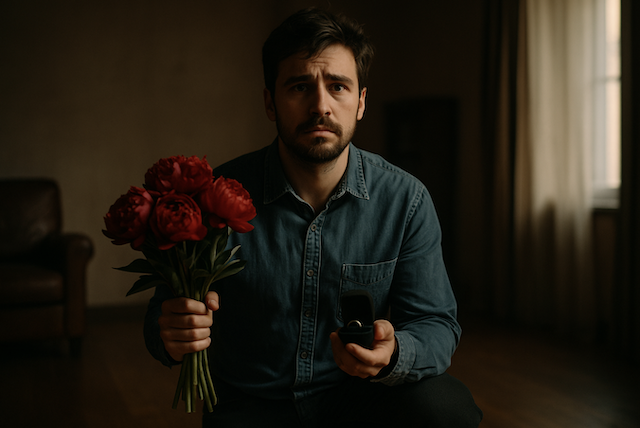 Антон не помнил, как открыл дверь квартиры. Не включая света, прошёл в гостиную и достал из кармана коробочку. Сквозь полумрак тускло поблёскивало золотое кольцо с одиноким бриллиантом. Он сжал украшение в ладони. Холод металла обжёг кожу. И что-то внутри него надломилось. Сначала вырвался глухой стон, затем — тяжёлое, надрывное рыдание. Он стиснул кольцо так, что оно впилось в руку, и опустился на колени. Он больше не чувствовал себя отвергнутым мужчиной — только глупцом, который принял доброжелательность за чувства, а простое участие — за любовь.