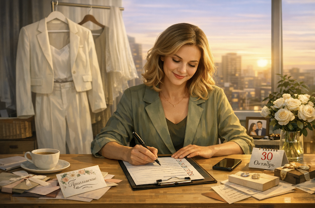 Она забрала из мастерской свой наряд для регистрации — светлый костюм с коротким пиджаком. Теперь казалось, что всё наконец готово к главному событию.