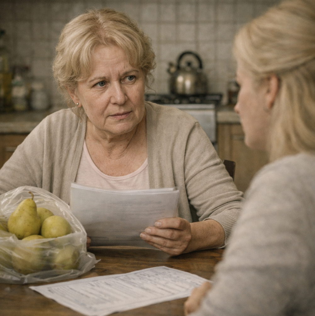 Елена молча впустила её. Мария Сергеевна прошла на кухню, разложила бумаги.