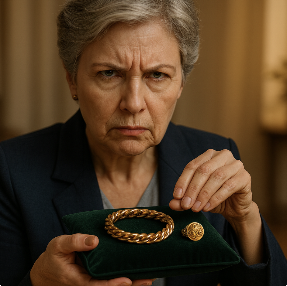 Она подошла к столу, где лежали украшения, и не спрашивая разрешения, взяла перстень. Осмотрев его, вернула на место. Затем взяла браслет — тяжёлый и массивный.